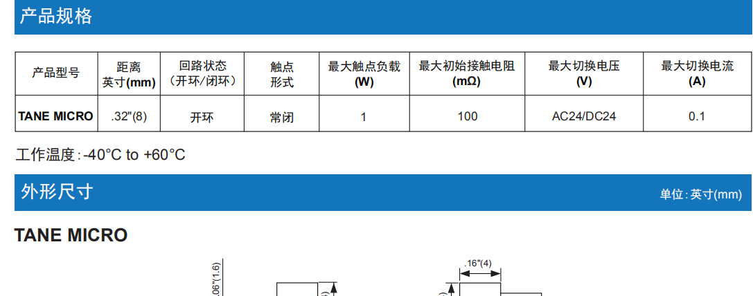 TANE MICRO 表面貼裝式安裝門磁開(kāi)關(guān)
